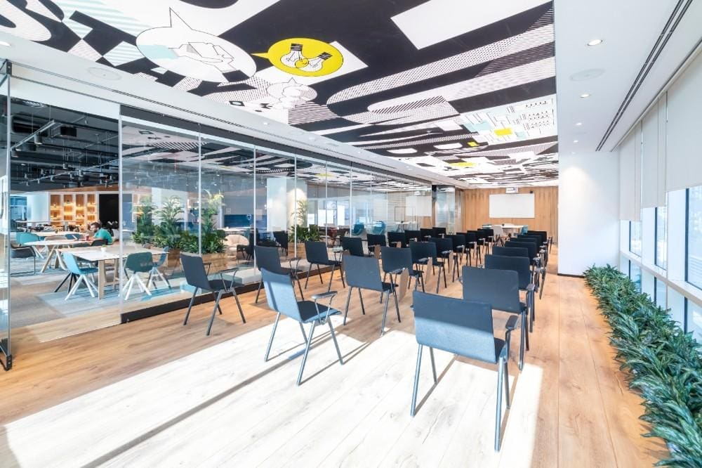 Experience our thoughtfully designed conference room in Dubai, a bright and inspiring space that comfortably accommodates up to 50 attendees. With modern interiors and a versatile layout, our conference rooms rental in Dubai is ideal for lectures, presentations, training sessions, and corporate events. Every element is crafted to ensure a seamless experience that blends professionalism, comfort, and innovation.